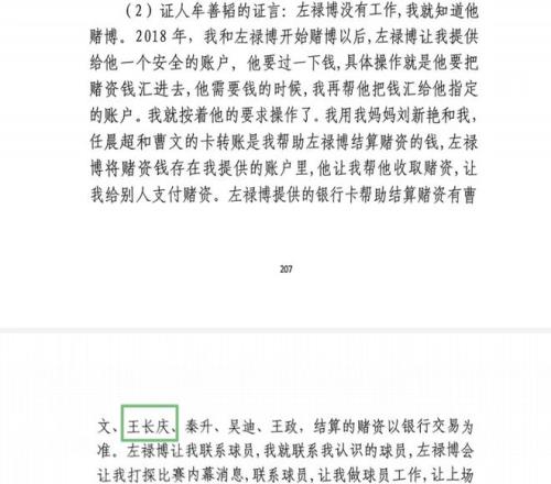 根据网上公开的前八一球员左禄博赌球案的判决书显示,王长庆的确在该案中受到了牵连。据王长庆本人证言供述,他从2020年开始就在左禄博那里赌球,总共下注高达200~300万元;他还指称左禄博“天天赌球、靠赌球赚钱”。