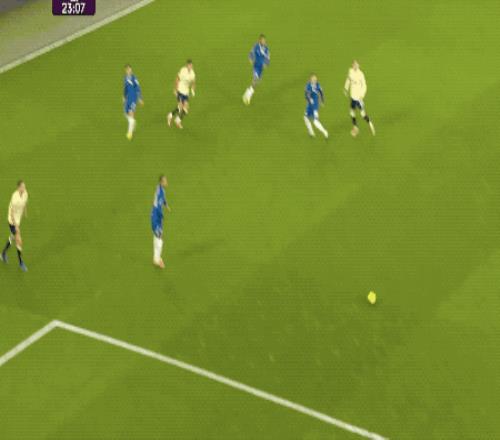 第21分钟,福法纳策动进攻,古斯托送出妙传,帕尔默冷静破门,打进了复出后的首个进球。
