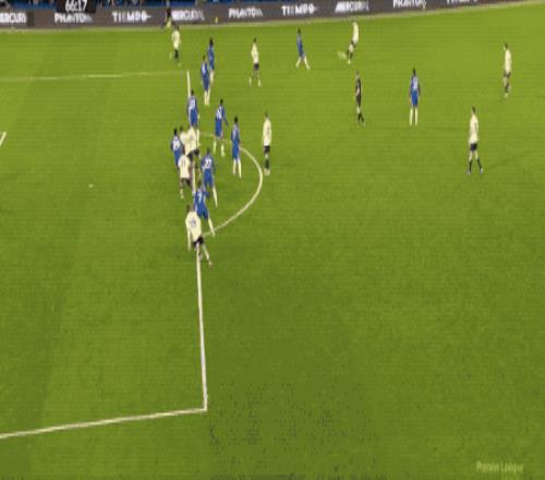 第55分钟,桑切斯送出长传,加纳乔利用速度甩开奥布莱恩,直面皮克福德,但最后的射门却打高了。